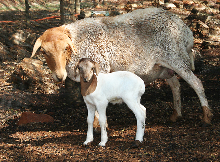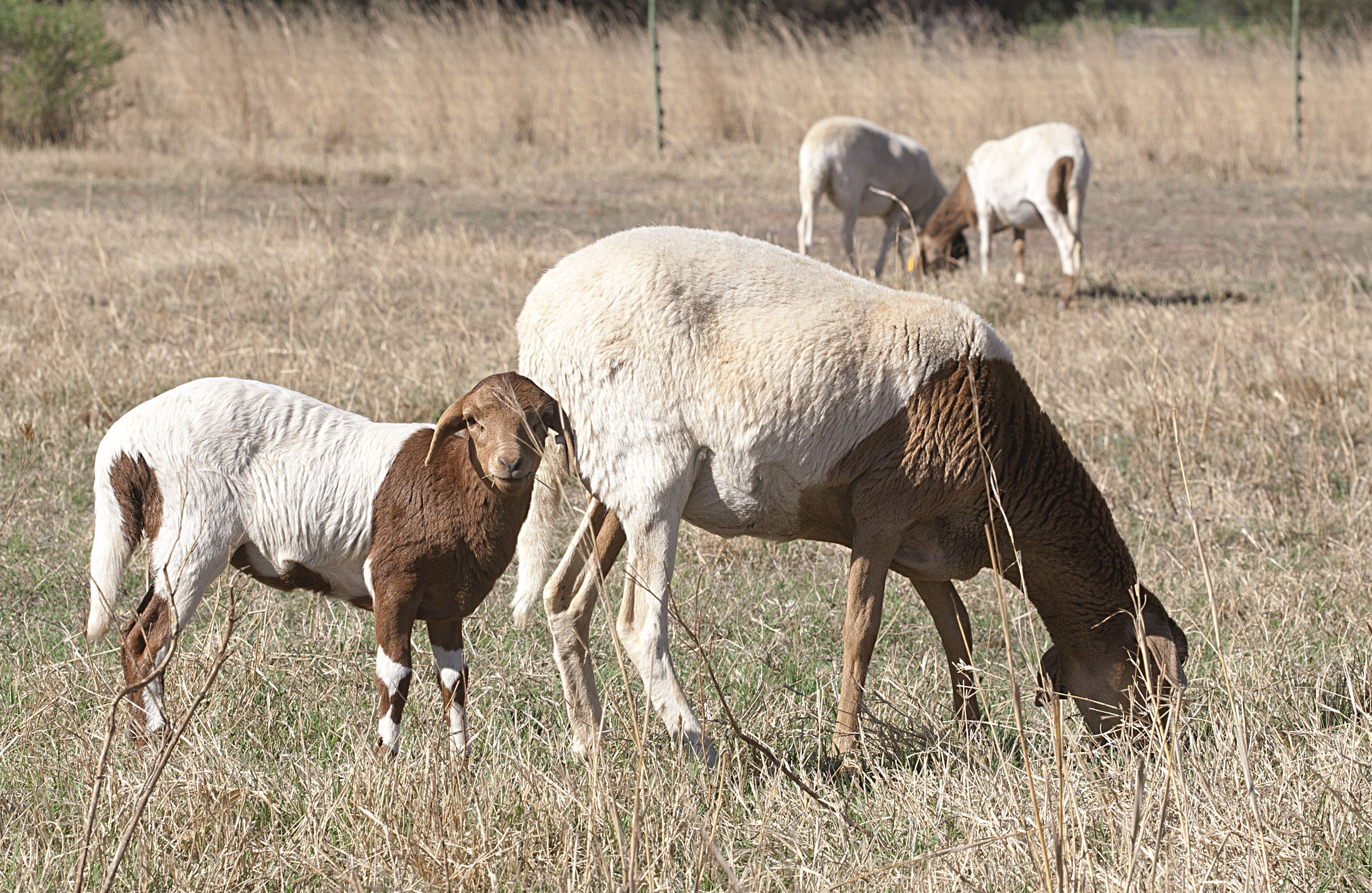 The Pedi sheep is primarily a veld sheep with a relatively fine frame. The ewes are relatively small and feminine when compared to the rams, which are masculine and alert. The breed is adapted to a harsh environment and can tolerate various stressful circumstances. The breed can walk long distances and the diet consists of grass, bushes and leaves. The Pedi is robust and has a large tolerance against the usual diseases and parasites. The meat is tender and tasty. Most of the fat is localized in the tail, which is typical a wedge shaped, fat tail, broad at the base and narrows carrot-like to the tip.