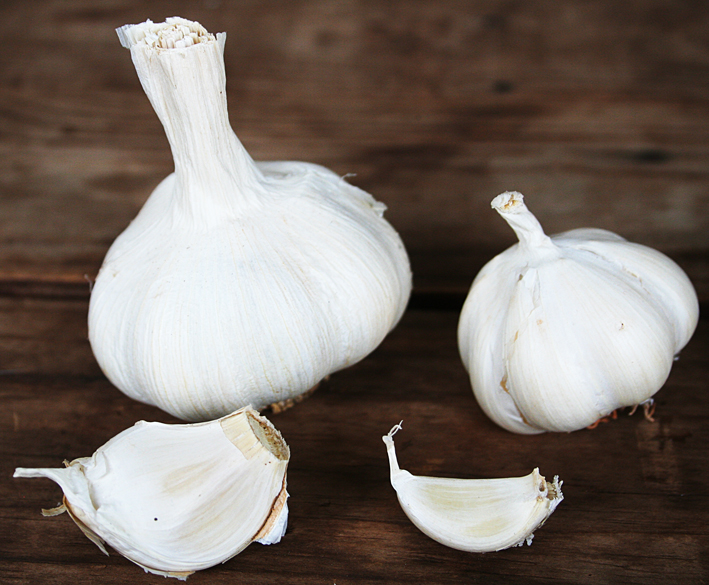 - Egyptian White (±12 cloves per head @ R20 per head for fresh, R35 per 50g seed garlic) – probably the garlic that is most often available in the supermarkets. A firm white head with a good garlic flavour. Produces and stores very well.