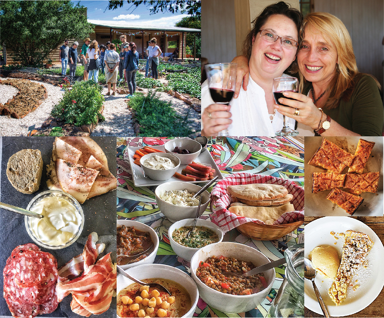 - freshly-made dips from organically grown vegetables and herbs (we even make our own tahini sauce) from the country cooking school’s internationally recognized food gardens;