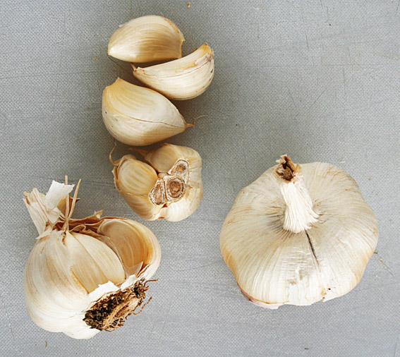 - Egyptian White (±12 cloves per head @ R20 per head for fresh, R35 per 50g seed garlic) – probably the garlic that is most often available in the supermarkets. A firm white head with a good garlic flavour. Produces and stores very well.