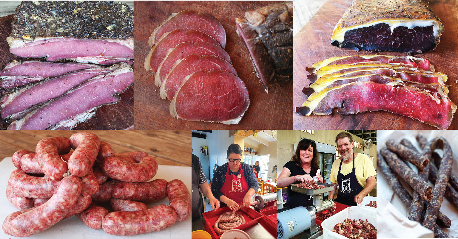 An introduction to the wonderful world of beef charcuterie. This hands-on 2 full day workshop, includes all ingredients and lunch on both days. In this charcuterie workshop we will introduce you to the basics of the three main arts of meat curing – whole muscle dry curing and aging; brining whole cuts for hot smoking; and how to make 3 classic sausages, and the basics of making salami and droewors.